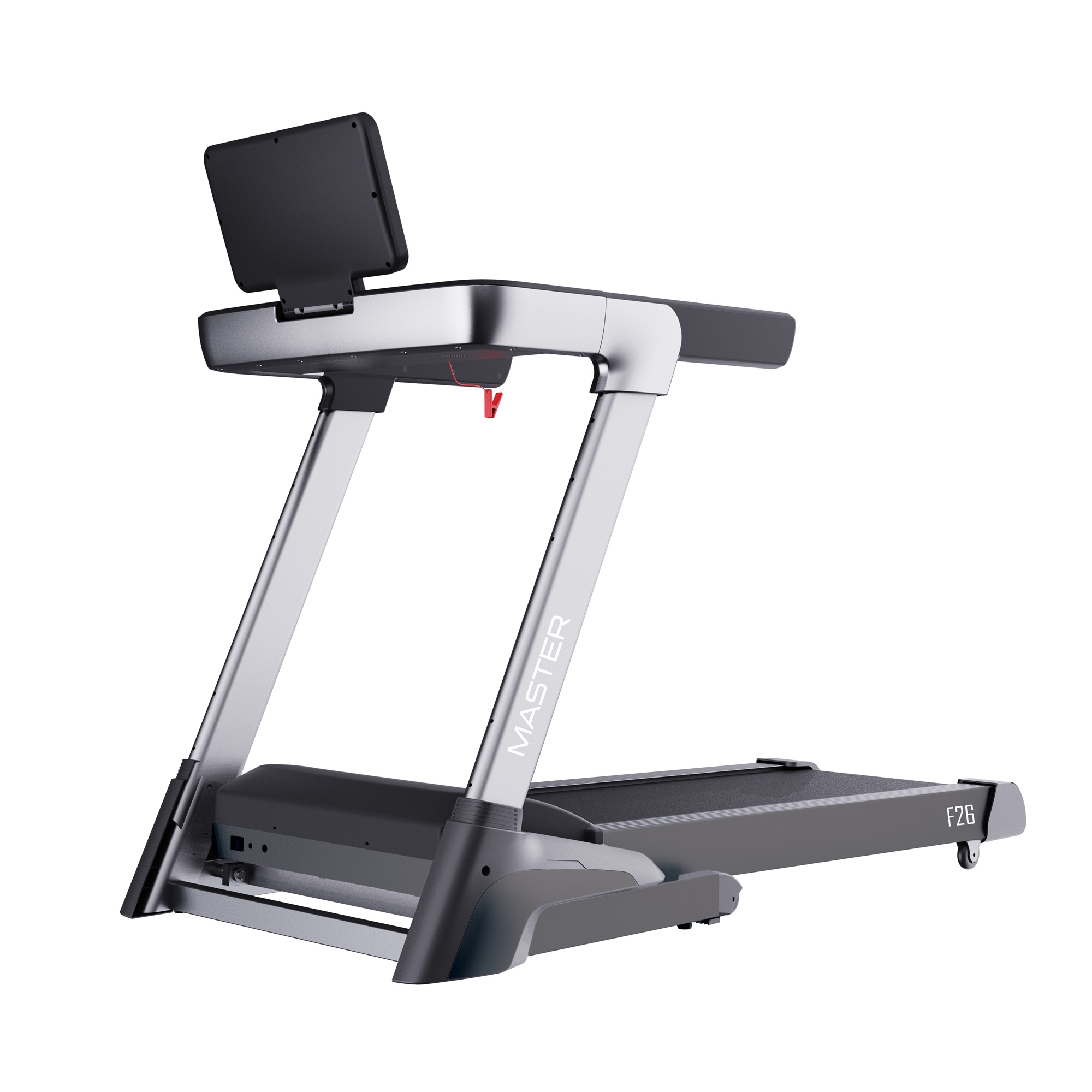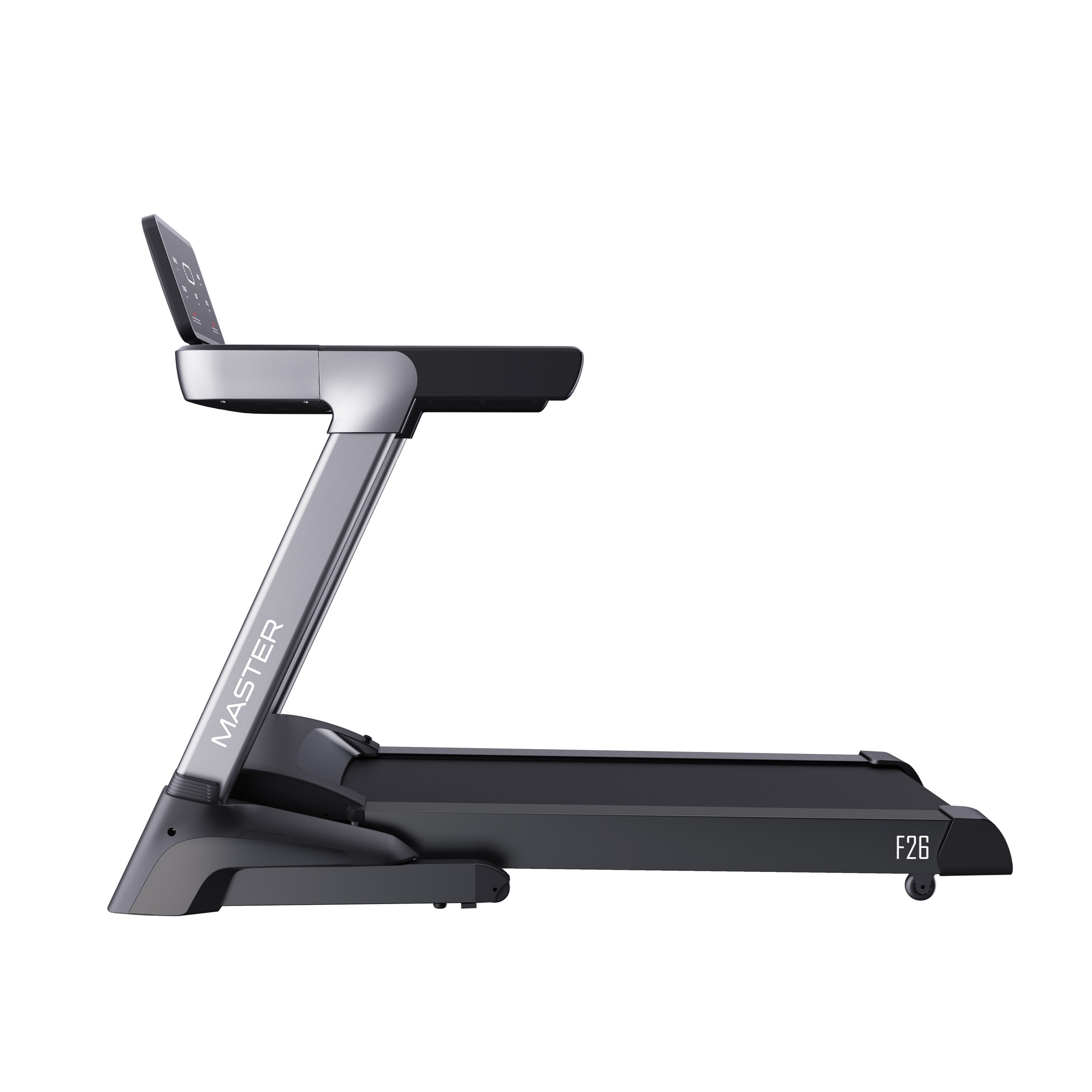 MASTER F-26 to doskonałe rozwiązanie dla osób szukających nowoczesnej, trwałej i cichej bieżni do domowego treningu z pełną kontrolą parametrów i multimedialnym wsparciem.