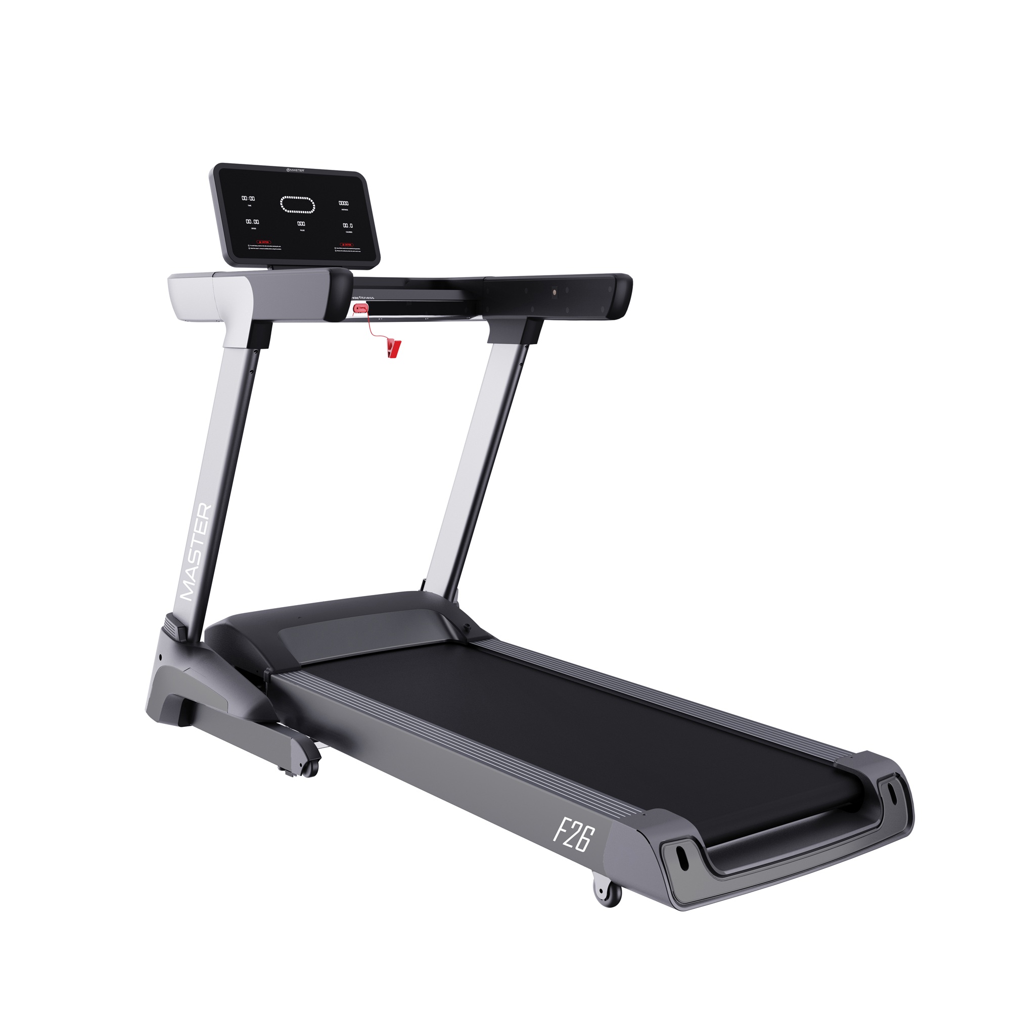 MASTER F-26 to zaawansowana bieżnia wyposażona w wysoce wydajny, bezszczotkowy silnik prądu stałego BLDC, który łączy cichą pracę z długą żywotnością – znacznie przewyższając klasyczne silniki prądu stałego. Dzięki intuicyjnemu wyświetlaczowi LED i bogatym funkcjom komputerowym, bieżnia umożliwia pełną kontrolę treningu, monitorowanie postępów i komfortowy, bezpieczny bieg w domu.