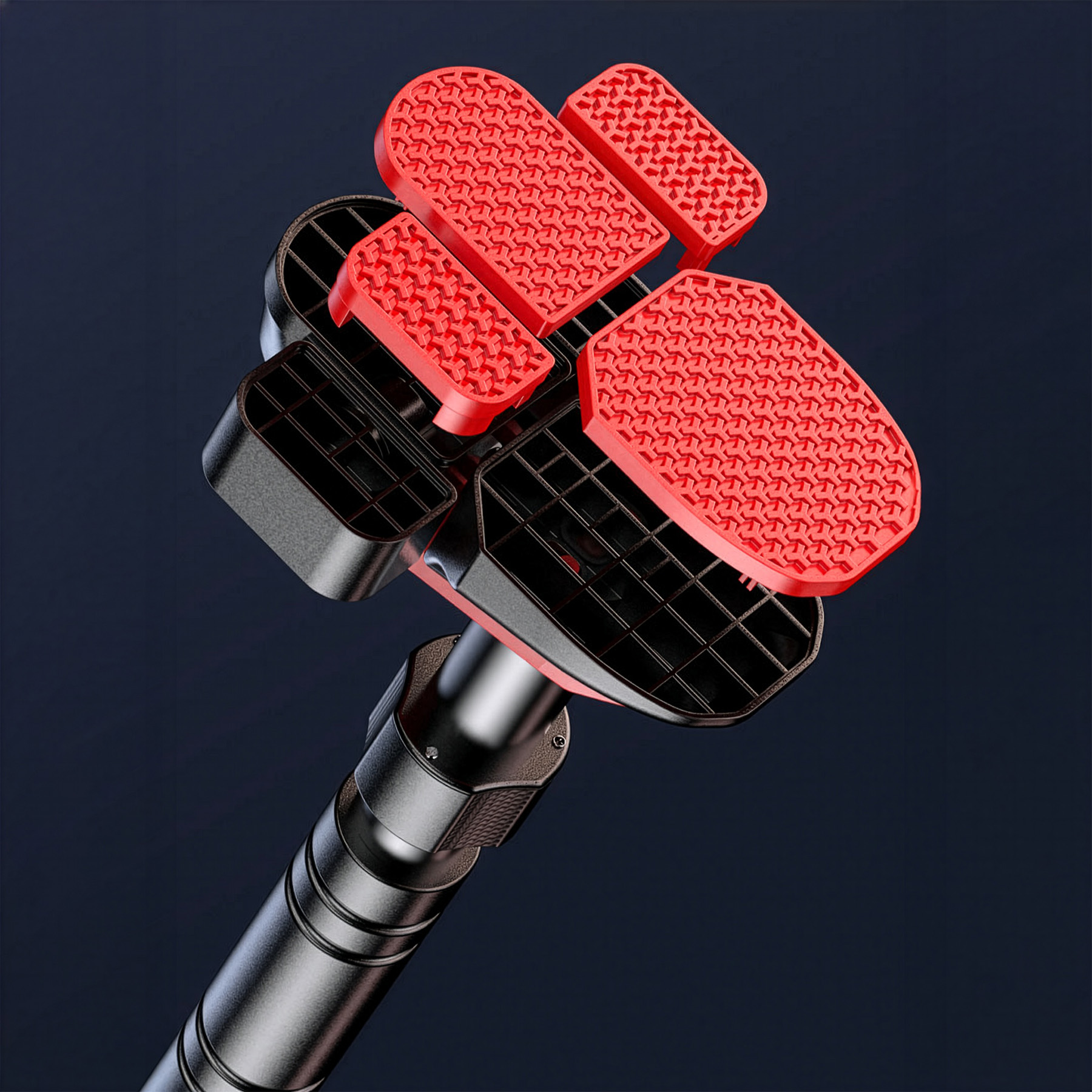 Regulacja długości drążka z zakresu 77-95 cm sprawia, że pasuje on do standardowych framug, a gruba pianka na uchwytach zapewnia wygodny i bezpieczny chwyt. Dodatkowo, wbudowana poziomica ułatwia precyzyjne ustawienie drążka.