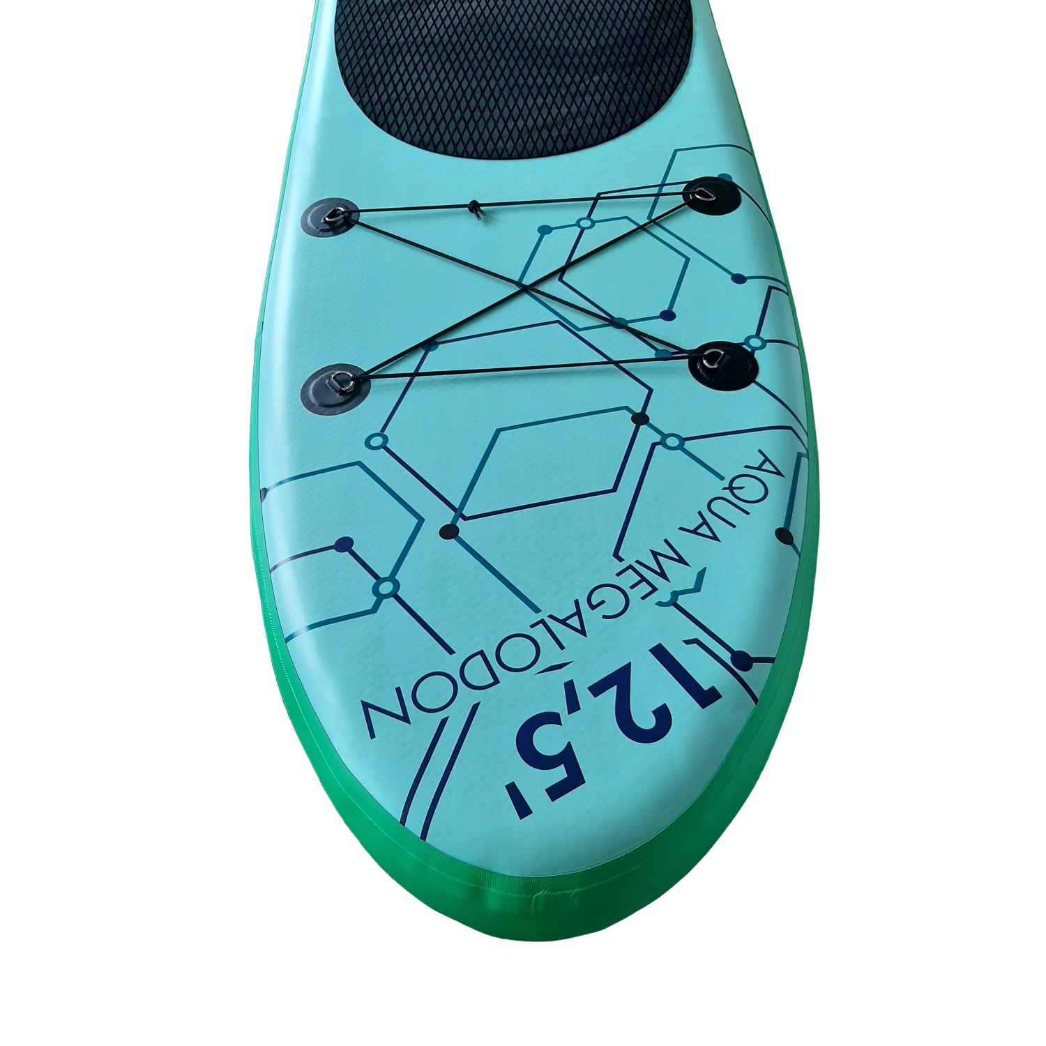 Deska Paddleboard MASTER Aqua Megalodon - 12,5" przeznaczony jest dla początkujących i zaawansowanych użytkowników na spokojnych wodach i umiarkowanych falach. Duży rozmiar i wytrzymałość 170 kg zapewniają doskonałą zabawę zarówno osobom indywidualnym, jak i rodzicom z dziećmi. Sztywność deski zapewnia wysokość 15 cm i zastosowany dwuwarstwowy materiał DROP STICH. Wykonany jest z materiałów odpornych na słoną wodę, promieniowanie UV, można go łatwo napompować, opróżnić i zapakować w praktyczną torbę z kółkami. Antypoślizgowy bieżnik wykonany z pianki EVA gwarantuje stabilność deski. Paddleboarding to nowy sport wodny, w którym stoimy na desce i poruszamy się do przodu za pomocą długiego wiosła. Popularny sport wodny pozwala na równomierne zaangażowanie całego ciała, poprawę poczucia równowagi i ogólnej kondycji fizycznej. Podczas wiosłowania aktywnie zaangażowane są mięśnie łydek nóg, mięśnie grzbietu i skośne brzucha oraz wszystkie mięśnie ramion.