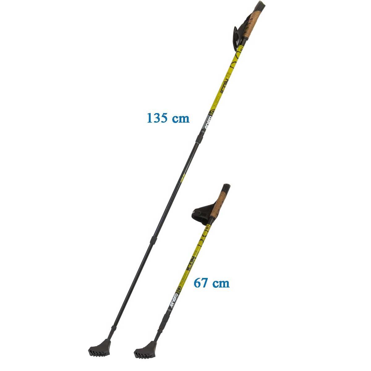 Kije są dwuczęściowe, rozkładane stopniowo, poprzez skręcanie dwóch sąsiednich segmentów, po ich rozłożeniu i ustawieniu odpowiedniej dla Ciebie długości, uruchamiana jest blokada, która ustawia kije na stałe w odpowiedniej pozycji.
