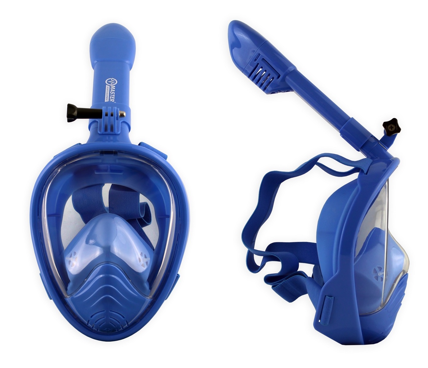 Maska pełnotwarzowa MASTER - przeznaczona do nurkowania. Maska zapewnia panoramiczne widzenie i umożliwia oddychanie przez nos i usta. Odkryj podwodny świat dzięki tej masce, która pozwala oddychać całkowicie naturalnie. Maska zawiera uchwyt GoPro i zatyczki do uszu.