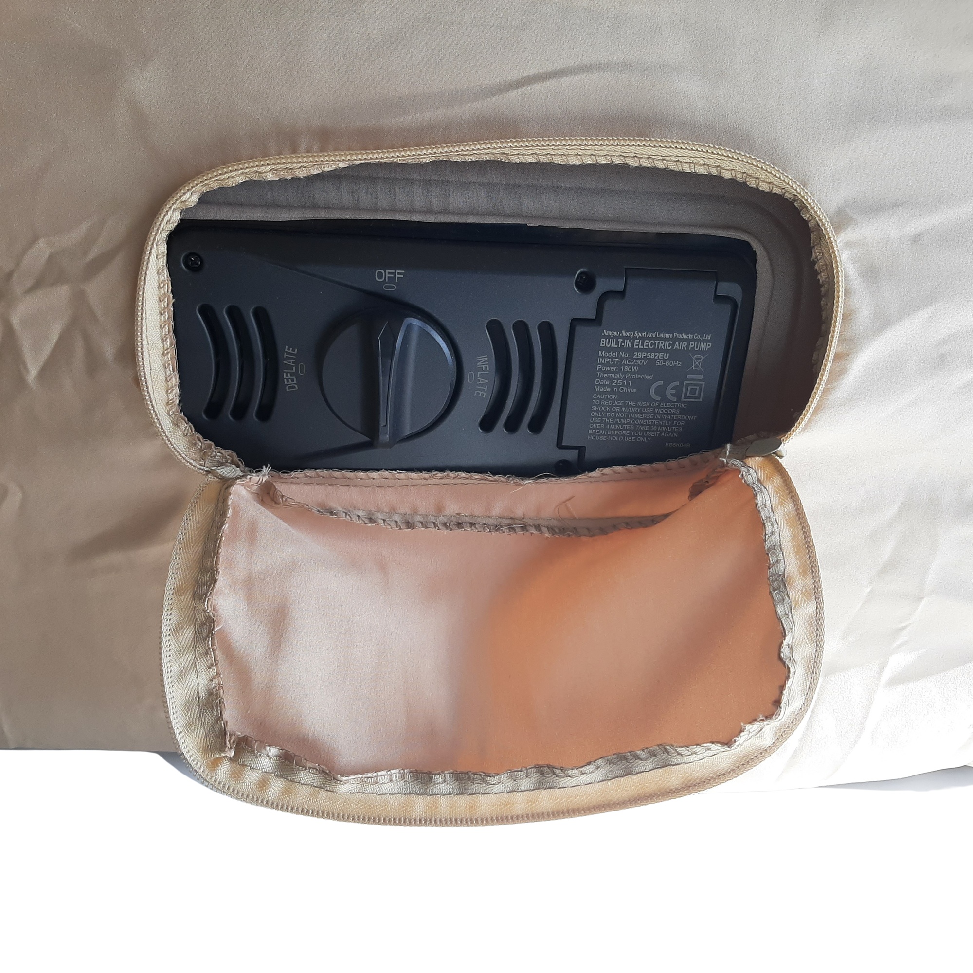 Wbudowana pompka elektryczna 230 V umożliwia pompowanie i spuszczanie powietrza