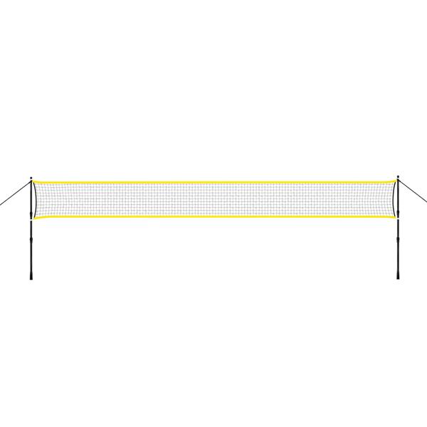 Produkt montuje się wbijając do ziemi słupki, które są stelażem, a do których przywiązujemy siatkę. Słupki są teleskopowe i oferują możliwość, powieszenia siatki na dwóch wysokościach. Zarówno siatka jak i stelaż, są odporne na warunki atmosferyczne. Długość siatki to ponad 6 m, dlatego pozwala na swobodne rozegranie, dwóch meczy jednocześnie.