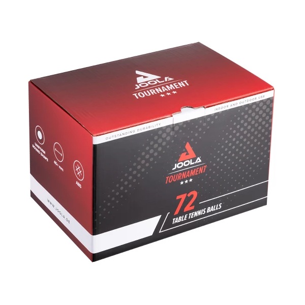Piłki JOOLA TOURNAMENT *** 40+ to wysokiej klasy piłki turniejowe przeznaczone dla wymagających graczy, klubów sportowych oraz szkół. Wykonane z nowoczesnego i wytrzymałego tworzywa ABS, zapewniają doskonałą trwałość oraz idealnie równą krągłość, co gwarantuje stabilny tor lotu i precyzyjne odbicia podczas gry.
