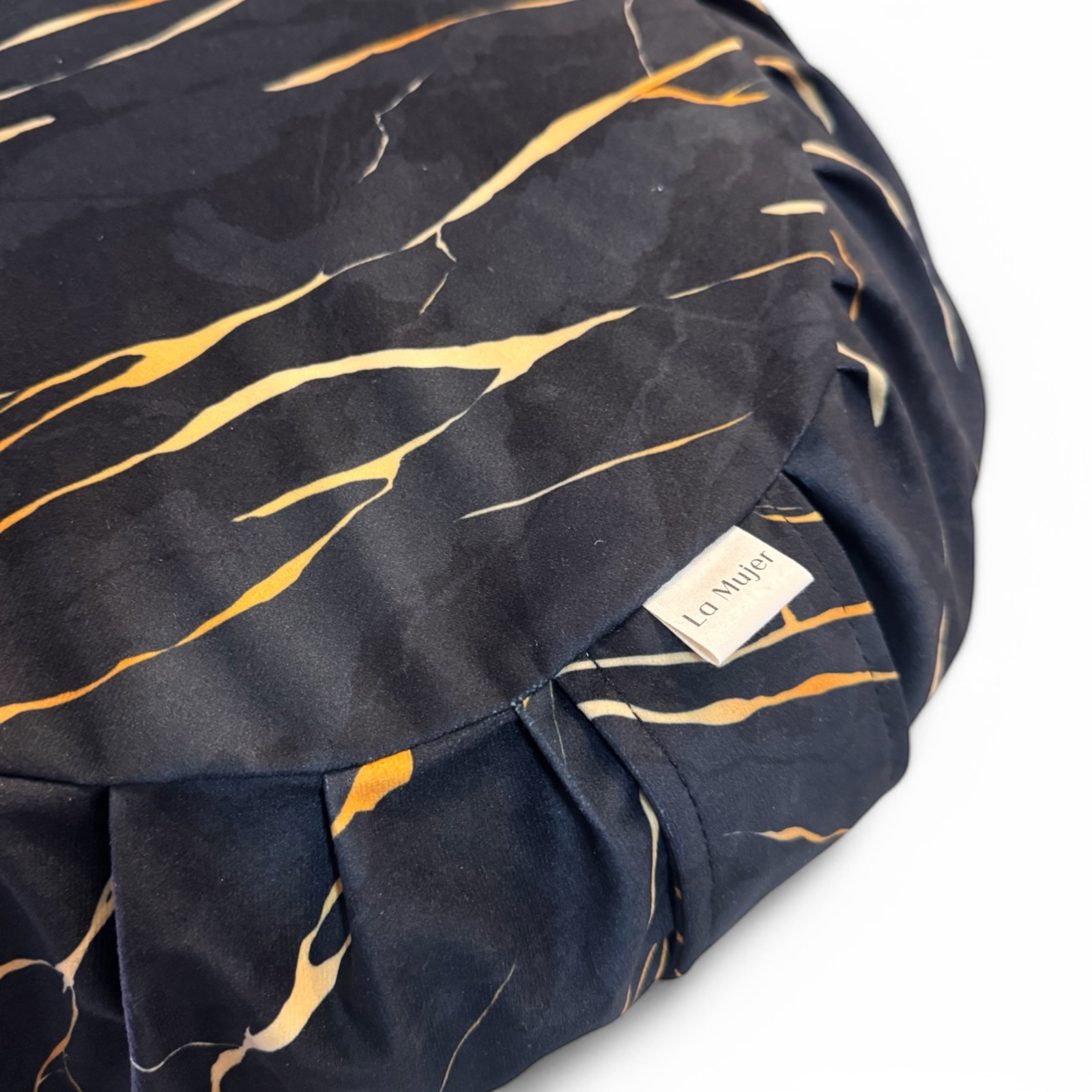 Tkanina którą użyliśmy w produkcji poduszki jest bardzo miękka i wytrzymała. W dotyku przypominająca plusz o krótkim włosiu.