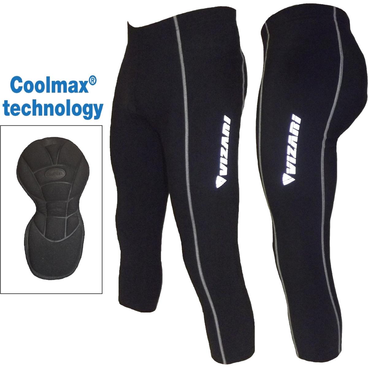 Zalety: • antybakteryjna wkładka z systemem Coolmax • elastyczny materiał • bardzo dobrze dopasowują się do ciała • zmniejszają ryzyko otarć i podrażnień • odblaskowe elementy • ściągacz na nogawkach zapobiegający podciąganiu się do góry • idealne na chłodne wiosenne dni • brak sznurka w pasie • wymiary mierzone na płasko: - pas: 26 cm x2 / po rozciągnięciu 55 cm x2 - długość całkowita: 62 cm - długość nogawki: 45 cm - szerokośc nogawki: 15 cm x2