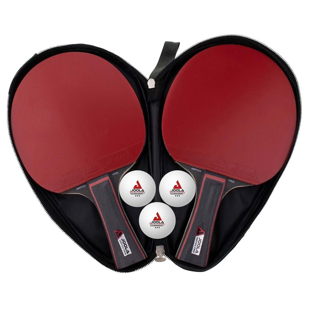Zestaw do tenisa stołowego JOOLA Duo Pro - składający się z dwóch rakietek JOOLA Match Pro, trzech piłek do tenisa stołowego JOOLA Tournament*** oraz praktycznego pokrowca. Zestaw jest idealny dla doświadczonych graczy, którzy zawsze mają swój sprzęt gotowy na pojedynek z przeciwnikami.